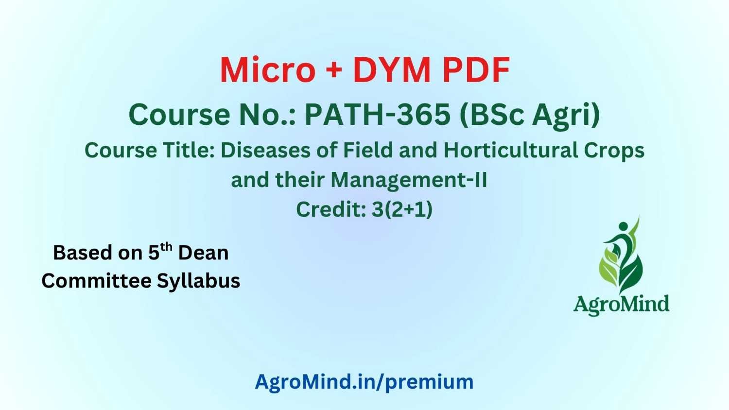 PATH-365 (Diseases of Field and Horticultural Crops and their Management-II) Micro + DYM PDF